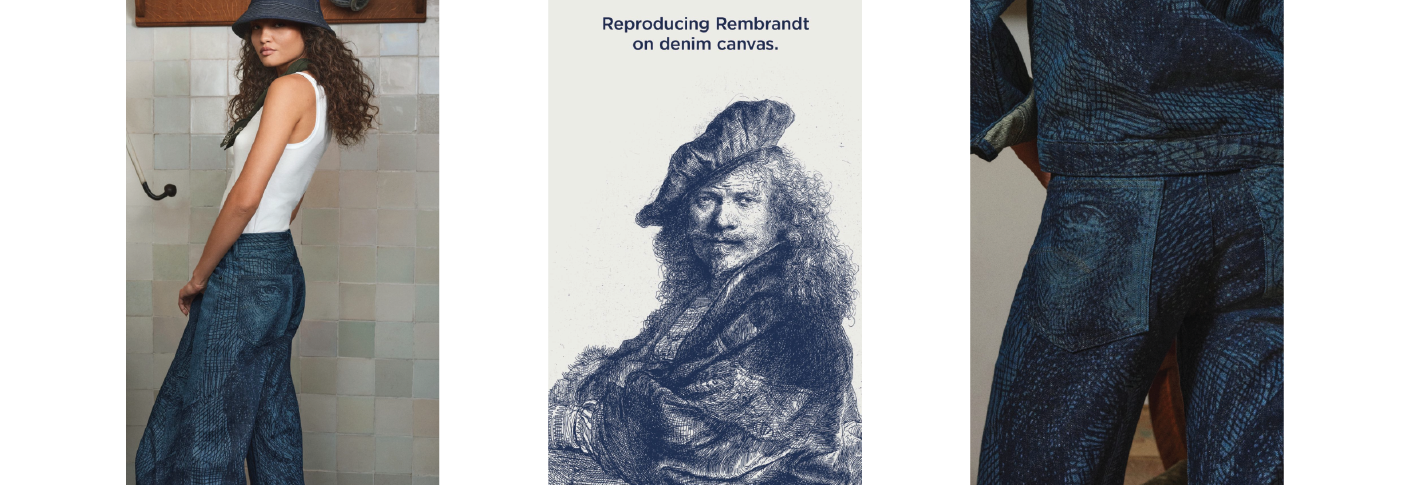 Gstar es como la ingeniera del denim. Su estética es más técnica, industrial y urbana. Tienen foco en la tecnología y la ciencia. Me crucé con esta cápsula que lanzaron con la impresión de un autoretrato de Rembrandt sobre el denim. Es sutil pero muy expresivo.